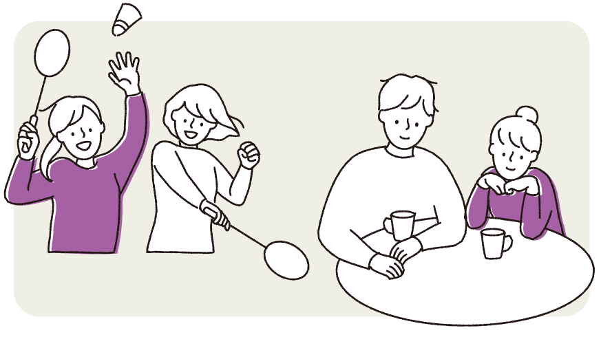 なかなか家から出ることが難しい場合は、ご家庭で一緒にお話ししたり、近くの公園などで運動をするなど、ケアハウスの通所まで支援します。