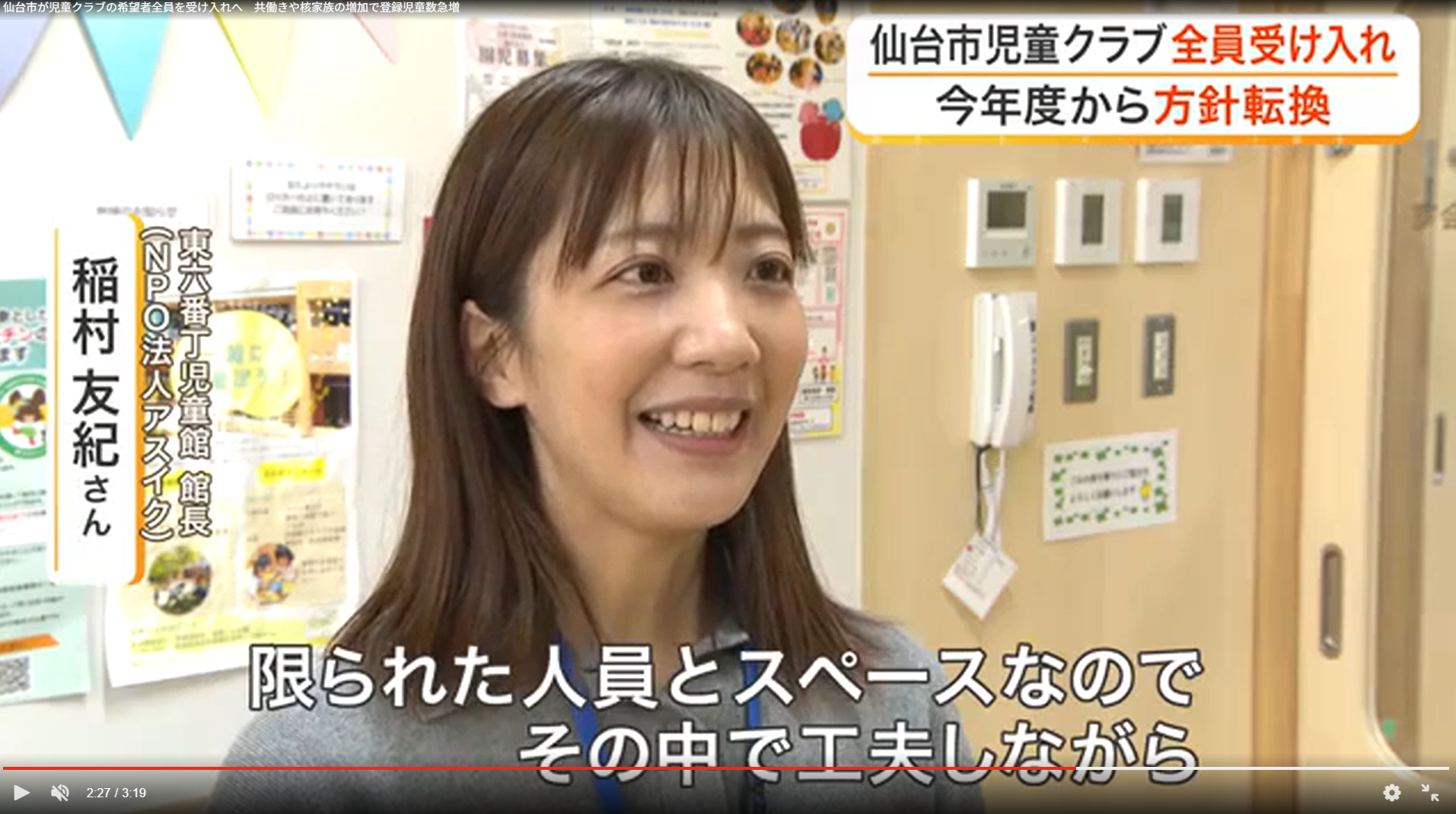 当法人で指定管理を受けている仙台市東六番丁児童館にて、児童クラブ受け入れに関する取材を受けました。https://nc.ox-tv.co.jp/news/detail/2026040700009